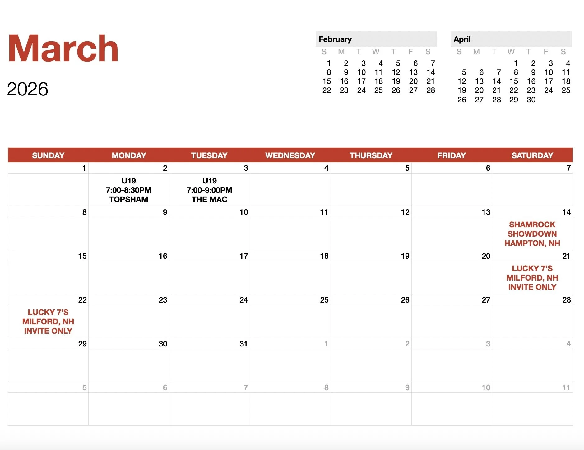 Session II will begin March 16th until the Regional Club Championship (Date TBD - Usually the first week of June). Tryouts for Spring tournaments and RCC’s will be held the first week of Session II during practice. This tryout will determine our A & B teams for each age division for our Spring tournaments. More information to follow!
